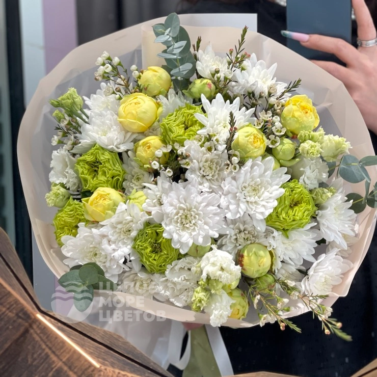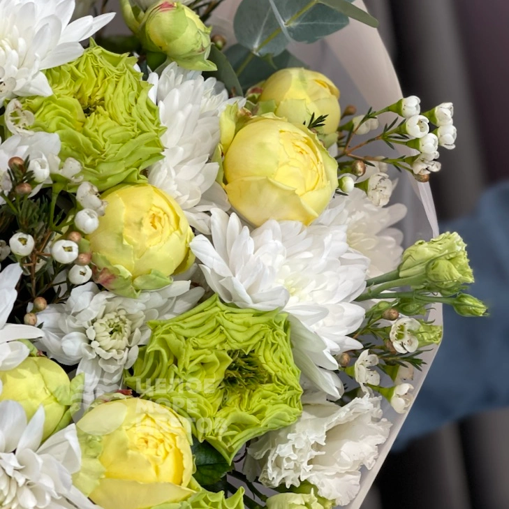 Подарите себе или близким яркое и свежее настроение с букетом «Букет лимончелло». Этот изысканный букет сочетает в себе великолепие кустовых роз пионовидной формы и изысканную хризантему, создавая гармоничный и насыщенный образ. Теплые оттенки цветов вызовут улыбку и поднимут настроение в любой день. Идеально подойдет для праздников, романтических моментов или как знак благодарности. Каждый цветок тщательно подобран и аккуратно собран профессиональными флористами. Букет «Букет лимончелло» станет отличным подарком и ярким украшением интерьера. Закажите прямо сейчас и подарите радость и солнечное настроение!