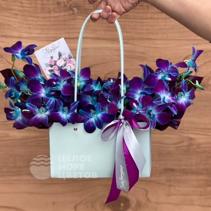 Сумочка с дендробиумом Ультрафиолет — это уникальное сочетание изящества и элегантности. Благодаря компактной форме он идеально подходит для подарка, подчеркнув особое отношение к получателю. В состав входит яркая орхидея, которая привлекает внимание и создает ощущение легкости и изысканности. оттенок Ультрафиолет придает изделию современность и стиль. Такой подарок подойдет как для праздника, так и для ощущения тепла и внимания в любой день. Высокое качество растений гарантирует длительное сохранение свежести и красоты. Легкий уход позволяет наслаждаться красотой букета долгое время без особых усилий. Подарите своим близким незабываемое ощущение радости и красоты с букетом-сумочкой с дендробиумом Ультрафиолет!