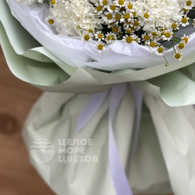 Букет Бежин Луг — это изысканное сочетание природы и красоты. В его составе представлены яркие кустовые хризантемы и свежие ромашки, создающие гармоничный и уютный образ. Такой букет отлично подойдет для любого праздника или чтобы порадовать близкого человека. Он долго сохраняет свежесть и радует глаз своей естественной красотой. Благодаря своим нейтральным тонам, он легко вписывается в любой интерьер. Букет Бежин Луг станет отличным символом теплых чувств и хорошего настроения.