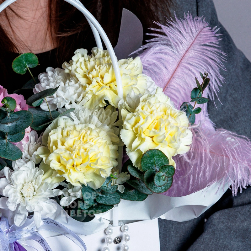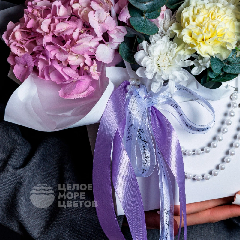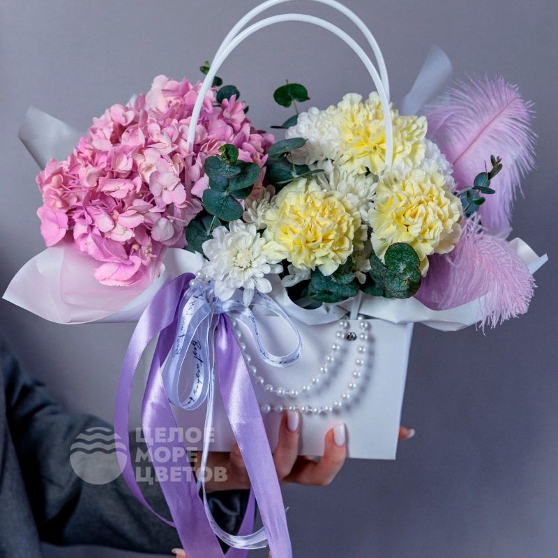 ГлавнаяКаталогКомпозицииСумочка для любимой с гортензией и диантусами