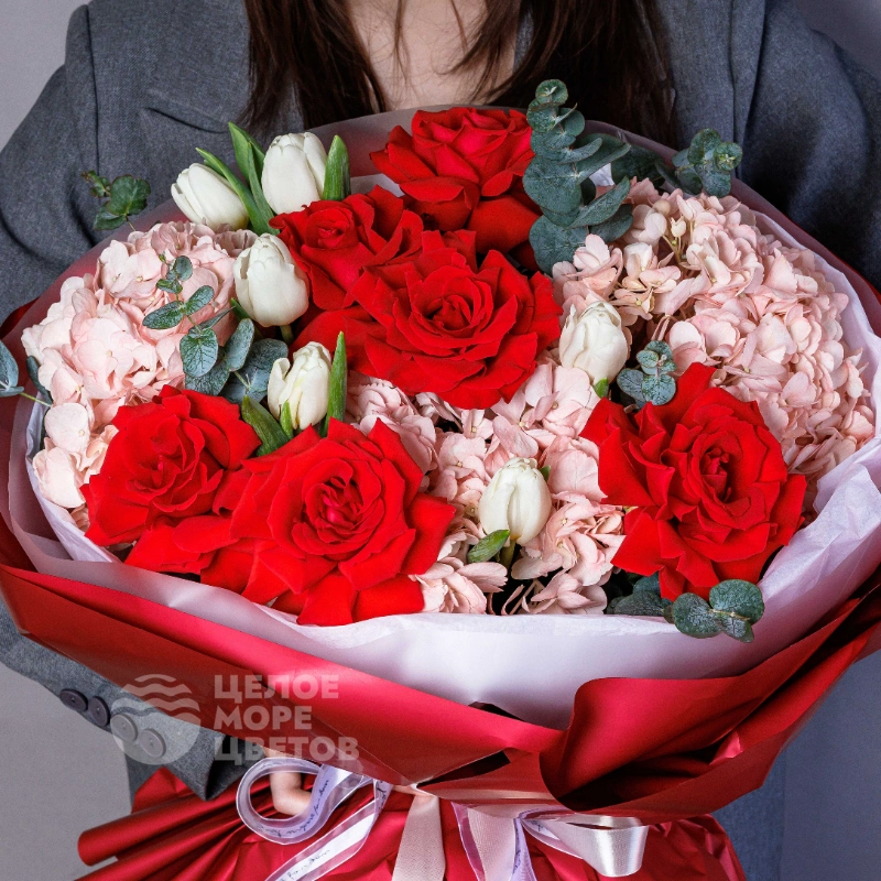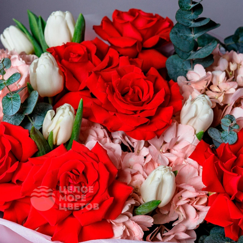ГлавнаяКаталогКомпозицииБукет с гортензиями и французскими розами