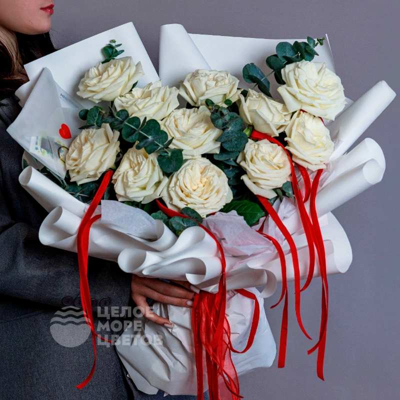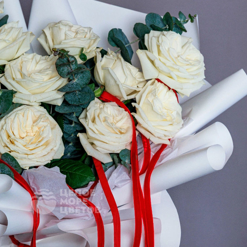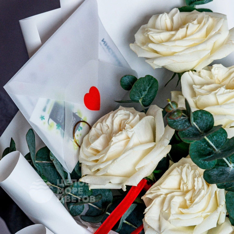 ГлавнаяКаталогРозыБукет из белых роз «Нить любви»