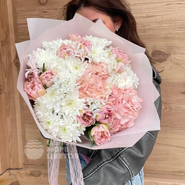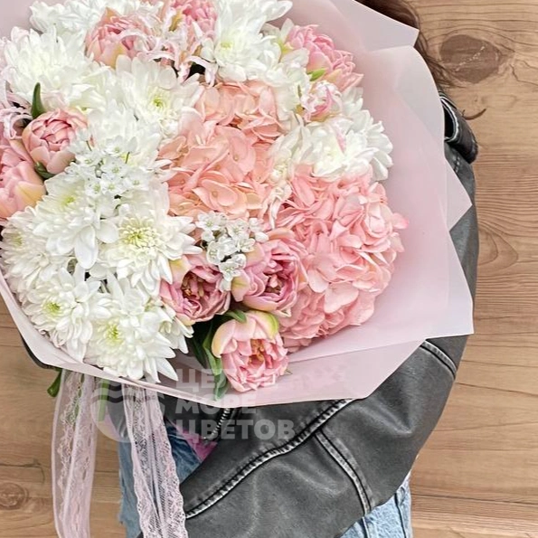 ГлавнаяКаталогХиты продажБукет Нежные чувства с гортензией и пионами