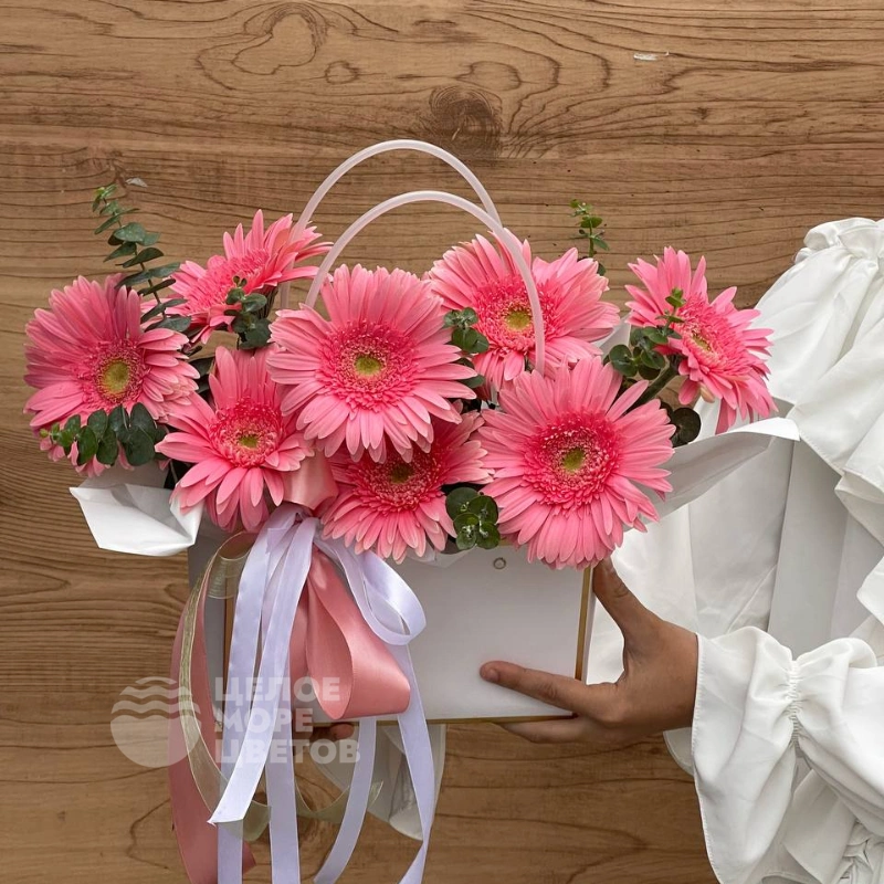 ГлавнаяКаталогКомпозицииСумочка с герберами и эвкалиптом