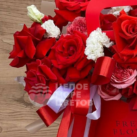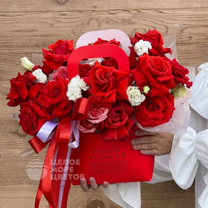 ГлавнаяКаталогКомпозицииСумка с французскими розами и эустомой