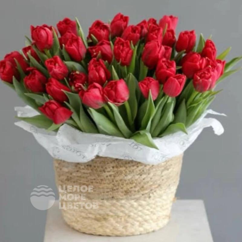 Корзина с красными тюльпанами 35 шт