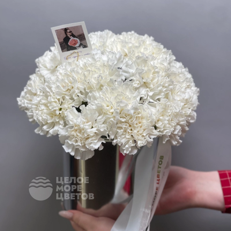 Этот элегантный букет представляет собой композицию с диантусами в стильном металлическом кашпо. Гвоздики добавляют яркости и насыщенности, создавая гармоничное сочетание цветов. Металлическое кашпо придает композиции современный и лаконичный вид. Цветы аккуратно размещены, подчеркивая их естественную красоту. Такой букет идеально подойдет для украшения интерьера или в качестве подарка. Он создаст уютную атмосферу и подчеркнет ваш хороший вкус.