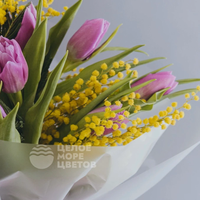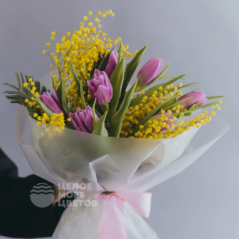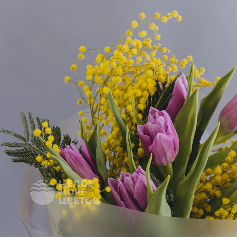 Этот утончённый букет сочетает яркую мимозу и элегантные тюльпаны, создавая ощущение весеннего вдохновения. В композицию входит семь свежих тюльпанов, символизирующих красоту и обновление, а также мягкая мимоза, добавляющая нежности и солнечного настроения. Идеальный подарок для тех, кто ценит искренние эмоции и природную гармонию. Букет выполнен из высококлассных цветов, тщательно отобранных для сохранения свежести и красоты. Он отлично подойдет для поздравлений, выражения благодарности или просто для поднятия настроения. Сделайте ваш подарок особенным с этим нежным и ярким ансамблем.