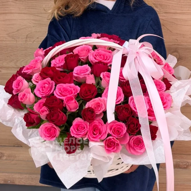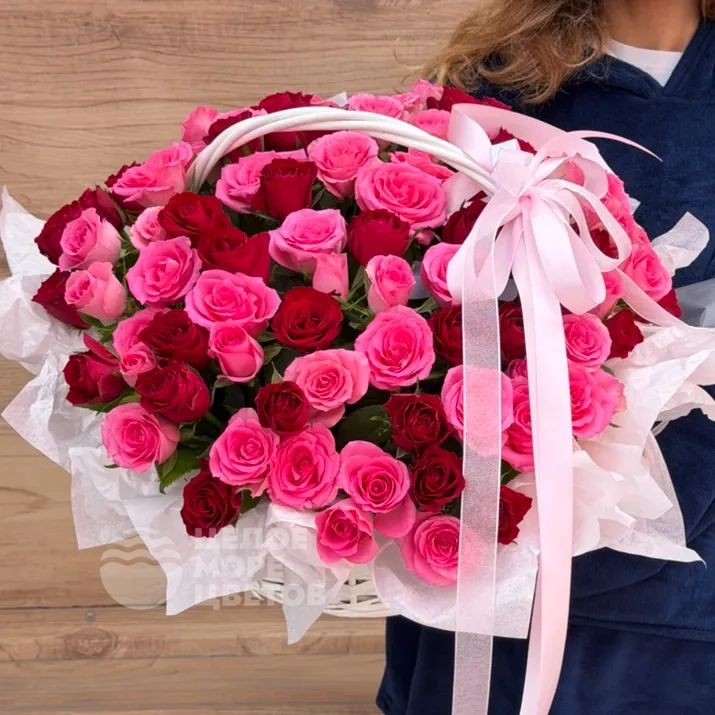Яркая композиция в корзине из 101 кенийской розы! Собрана в специальной флористической губке, поэтому не потребует дополнительного подрезания стеблей и отдельной вазы. Букет из 101 розы с быстрой доставкой по Туле и области! В подарок идет фирменный конверт с подкормкой для цветов и инструкцией по уходу.