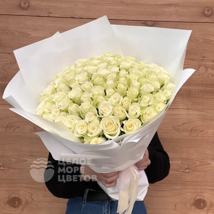 Классический букет из 101 белоснежной розы высотой 40 см - идеальный подарок для любимой девушки, жены, на день рождения, годовщину или другой повод. Букет с быстрой доставкой по Туле и области. Доставляется в аквапаке.В подарок идет фирменный конверт с инструкцией по уходу и подкормкой для срезанных цветов.