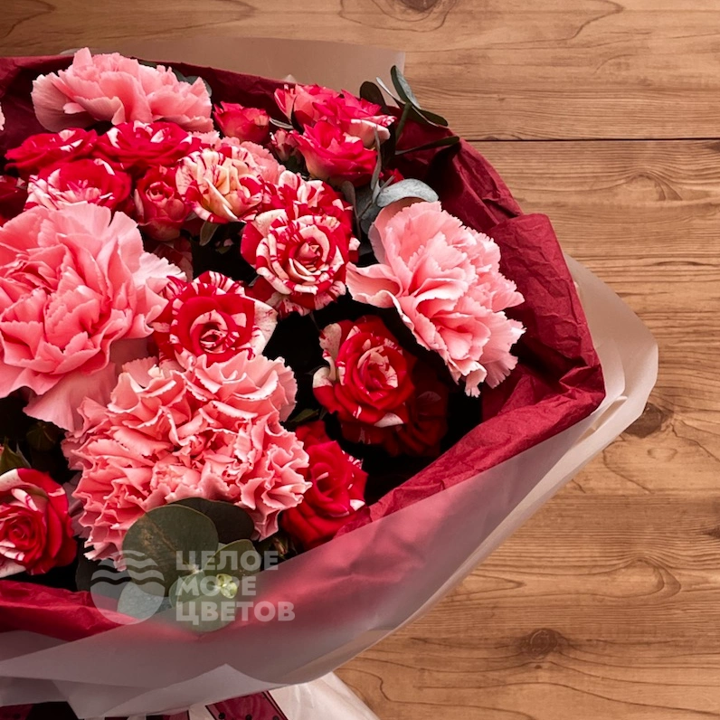 Букет «Розовое счастье» с диантусами
